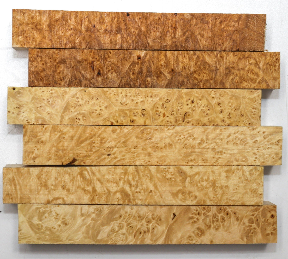 Maple Burl Pen Blanks, 6 pieces 0.8" x 0.8" x 5" to 6" long (PREMIUM FIGURE)
