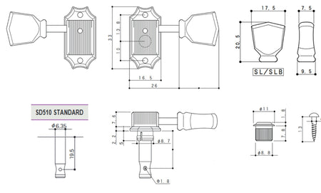 Gotoh SD510(CK)SL Tuners with Standard Post + C-A-R-D, 3L+3R (Cosmo Black)