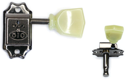 Vintage Closed-Back Tuners, Cosmo Black Finish, Plastic knobs, complete set including C-A-R-D + bushings + screws.