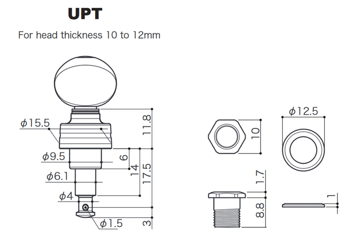 Planetary Tuners for Ukuleles with head thickness of 10 to 12mm.